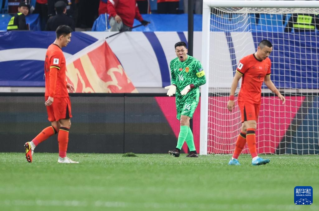 10月15日,中國隊守門員王大雷(中)在比賽中。