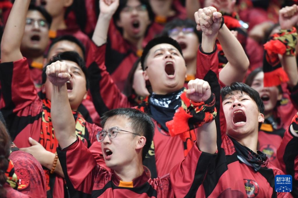 10月15日,中國隊球員拜合拉木(左二)在比賽中與隊友慶祝進球。