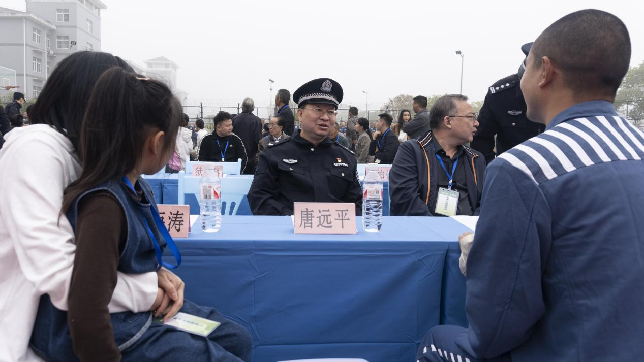 監獄黨委委員、副政委付雪松宣讀了《沙洋小江湖監獄關于表彰2023年度服刑人員改造積極分子的決定》,家屬上臺親自為獲得表彰的親人們佩戴綬帶。
