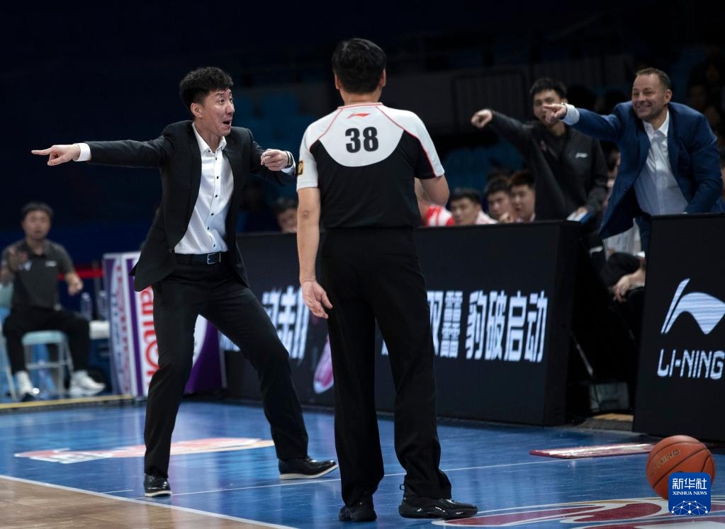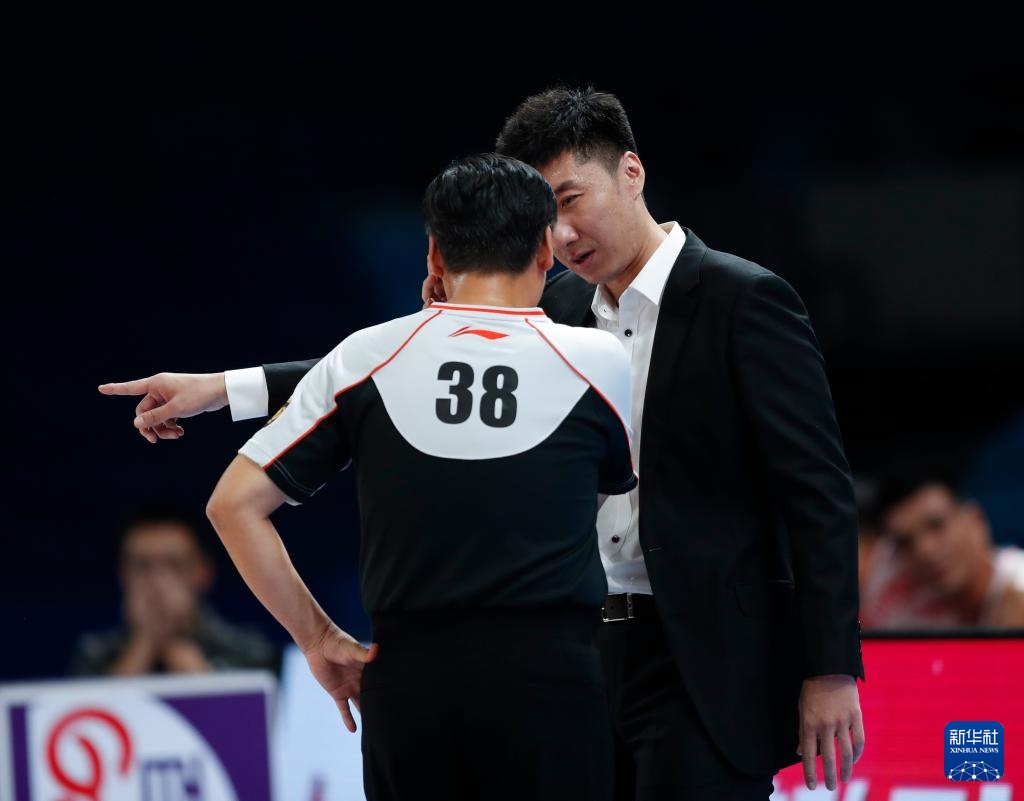 10月17日,四川豐谷酒業隊主教練韓碩(右)與裁判溝通。