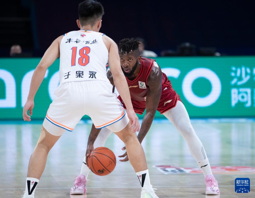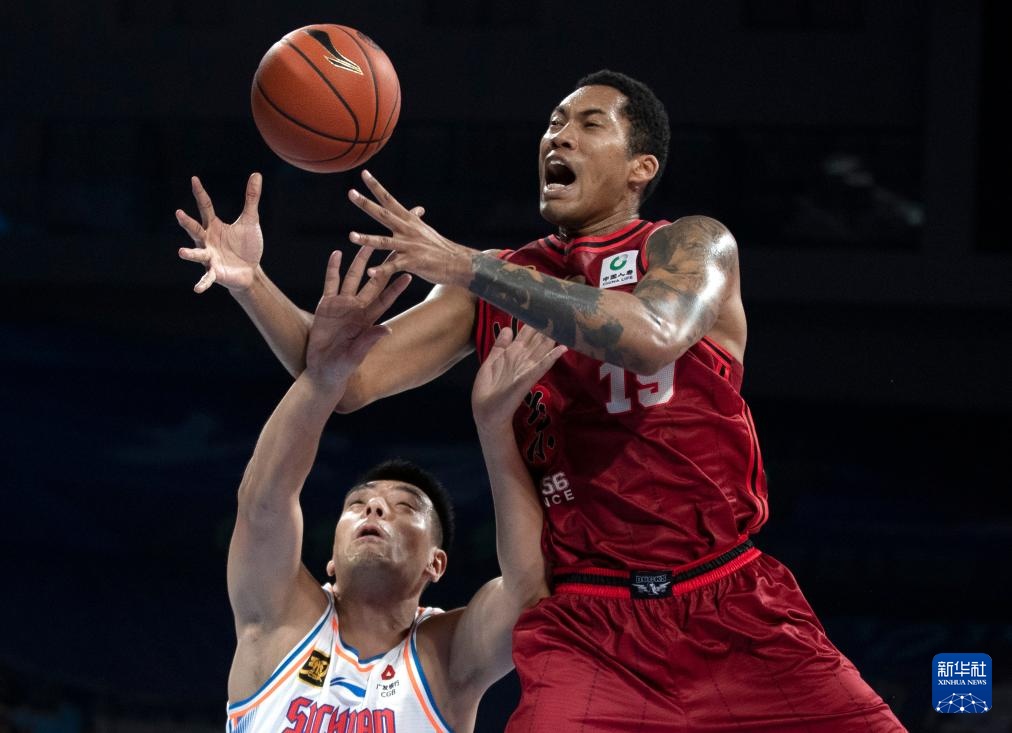 10月17日,四川豐谷酒業隊球員薩姆納(左)帶球突破。