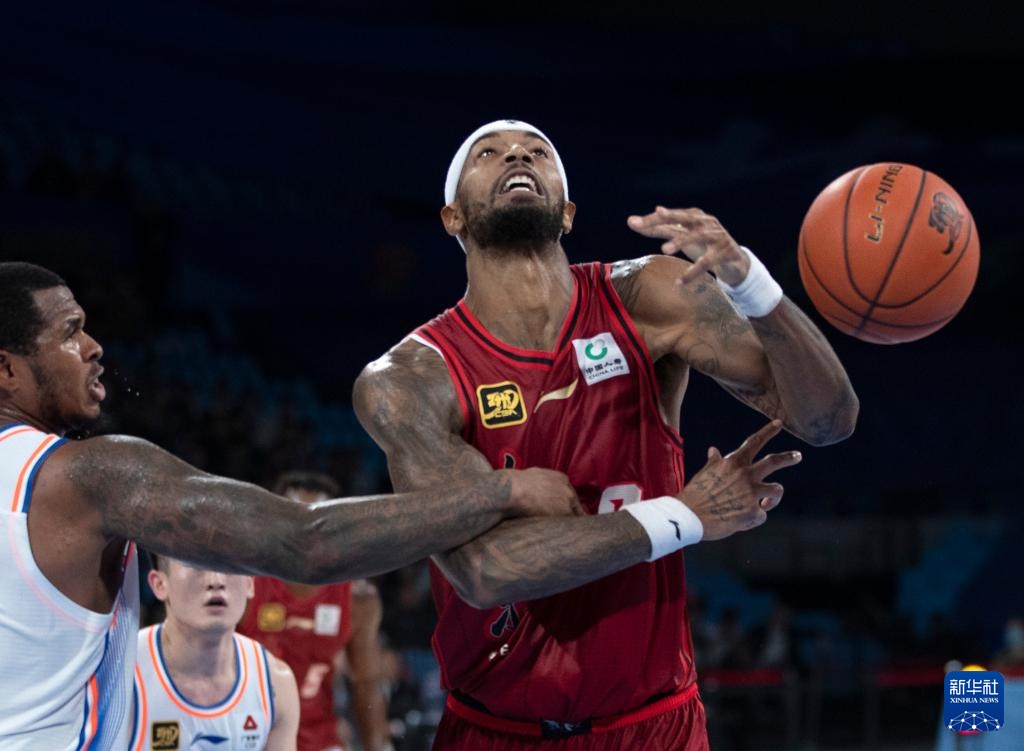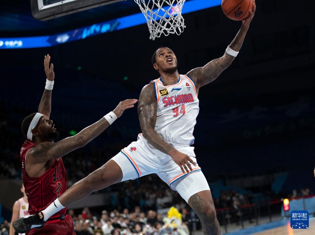 10月17日,四川豐谷酒業隊球員亨特(右)在比賽中上籃。