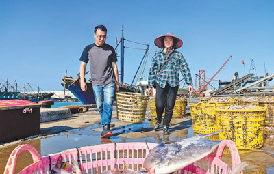 天高云淡,海風勁吹。福建漳州市東山縣澳角村碼頭汽笛悠揚,一艘艘漁船滿載而歸、徐徐靠港。