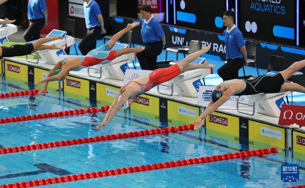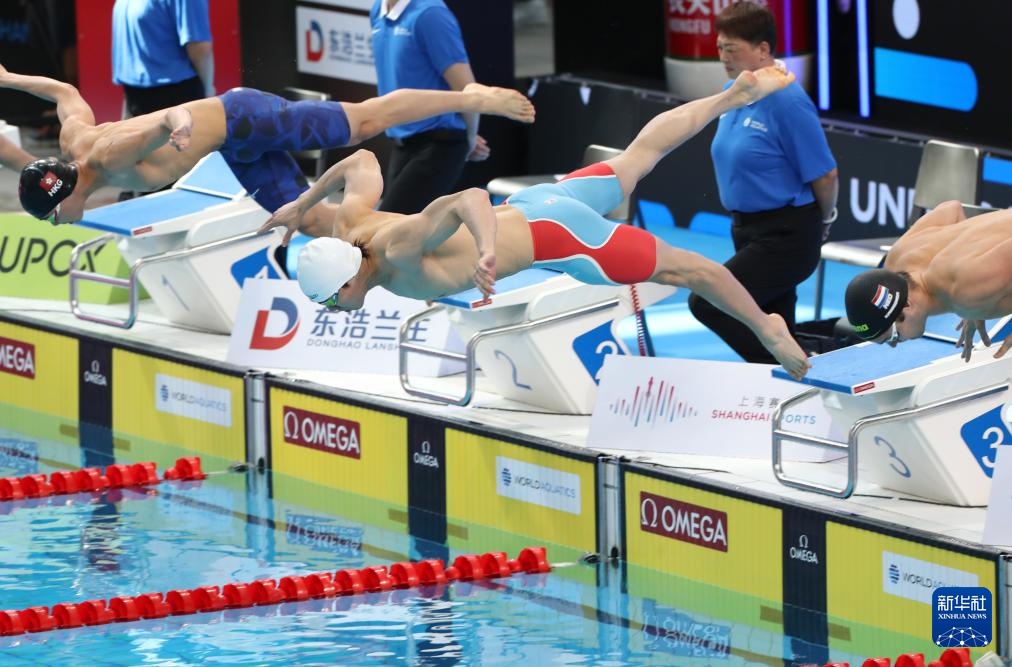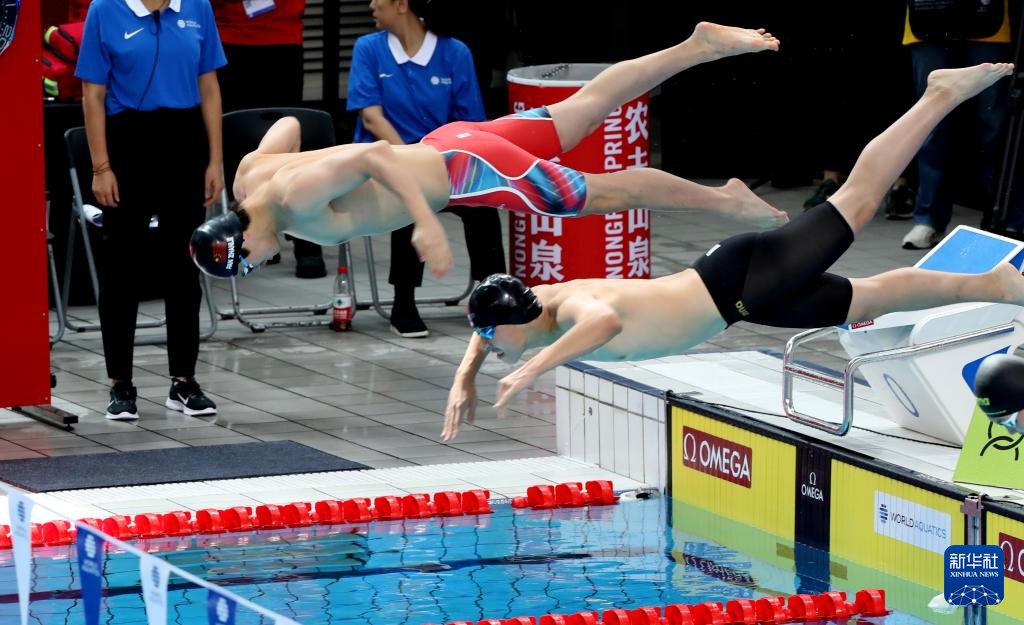 10月18日,中國選手潘展樂(上)在男子100米個人混合泳預賽中出發。最終,他晉級決賽。