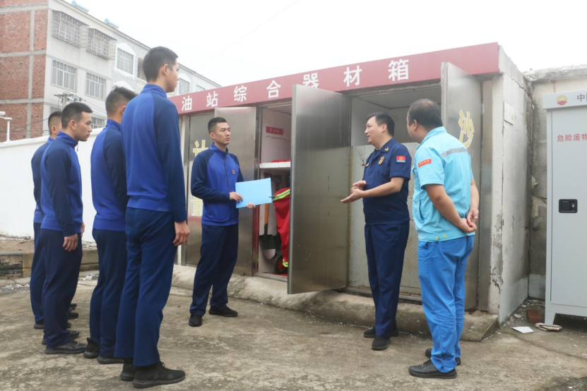 消防監督員為消防員講解加油站檢查重點 攝影:陳園