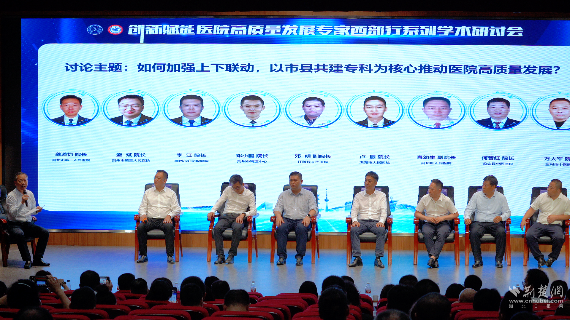 在醫院高質量發展專家西部行系列學術研討會環節,圍繞“如何加強上下聯動,以市縣共建專科為核心推動醫院高質量發展”的主題,與會專家進行了深入的討論和經驗分享。本次論壇上,對荊州市醫療服務信息質控情況進行了通報。
