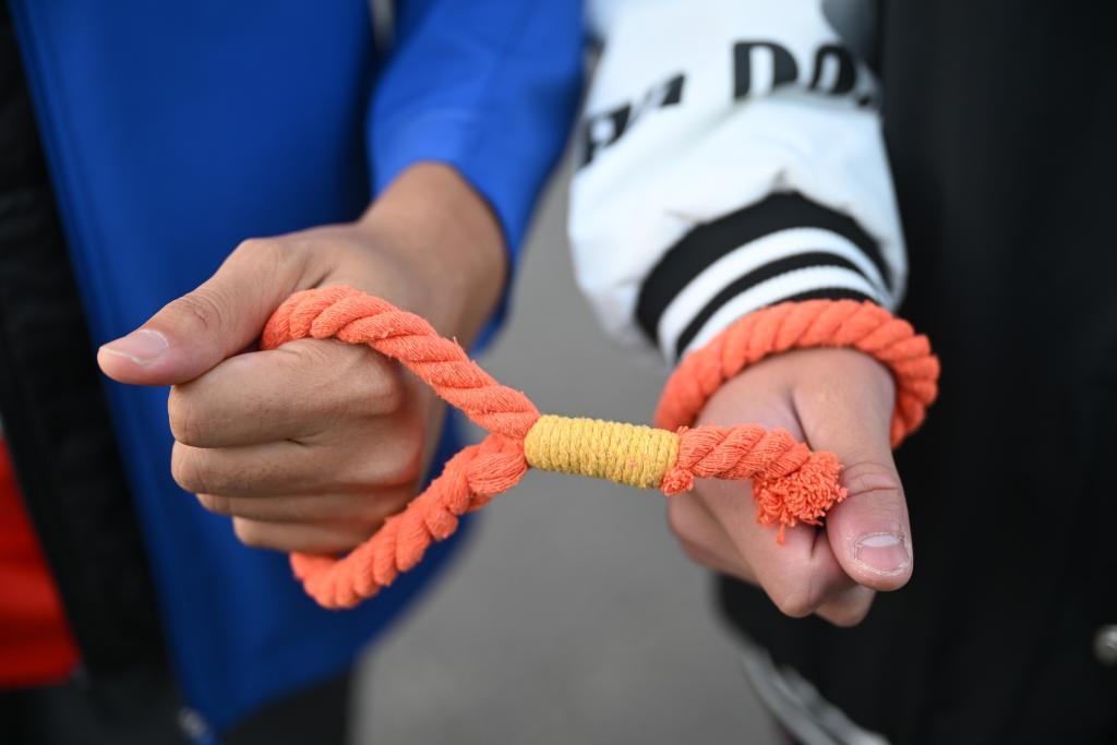 這是陪跑員團隊手工編制的用于引導方向的陪跑繩(10月20日攝)。新華社記者 孫凡越 攝