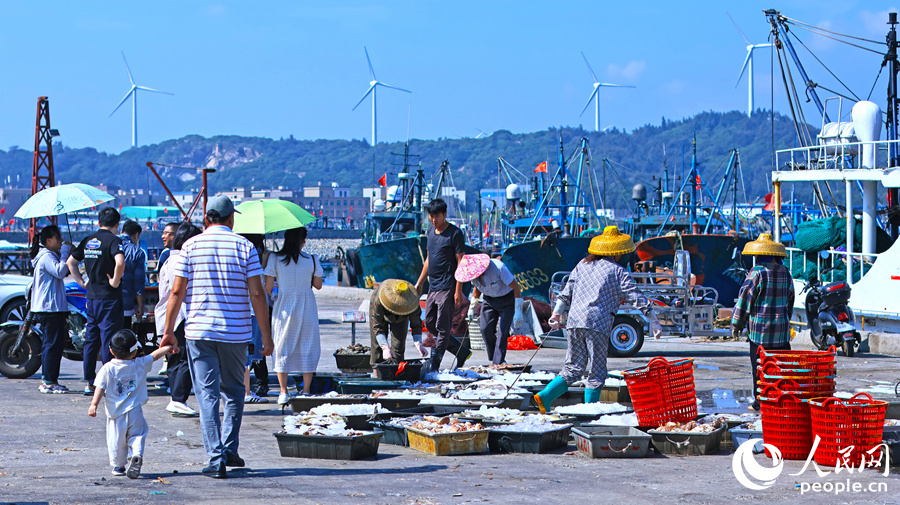 在澳角村,海鮮剛“登陸”就吸引不少游客前來采購。人民網 李昌乾攝