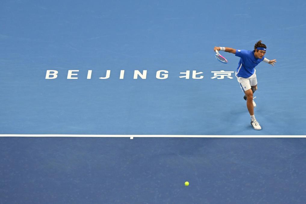 9月27日,張之臻在2024中國網球公開賽男單首輪比賽中回球。新華社記者 張龍 攝