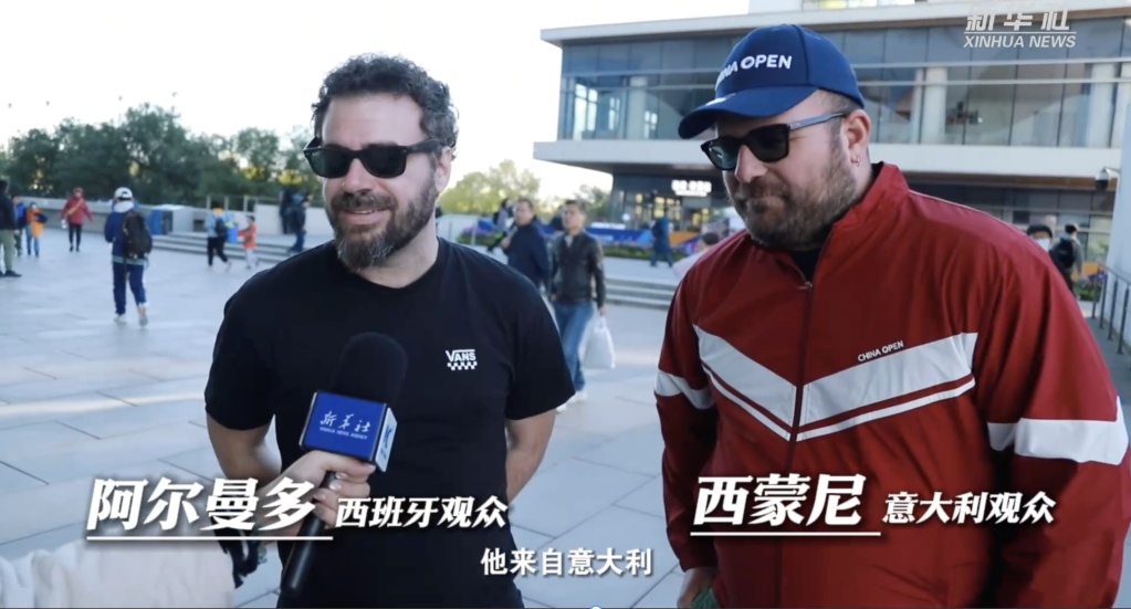 來自意大利的西蒙尼、西班牙的阿爾曼多結伴出現在中網賽場。他們因144小時過境免簽政策來中國旅游,并將觀看網球賽列入日程。
