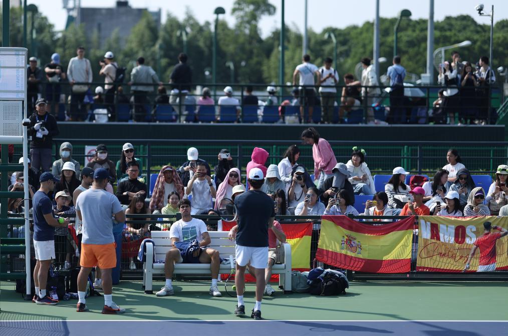 10月8日,上海大師賽期間,阿爾卡拉斯在球場訓練。新華社記者 白雪飛 攝