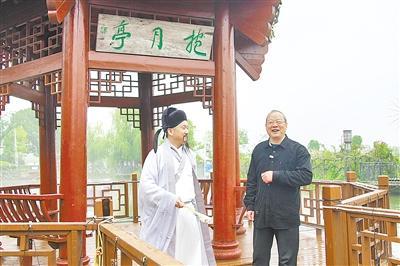 孟修祥(右)與詩仙李白扮演者共話詩酒田園。(楚天都市報極目新聞記者 馬鑫 攝)
