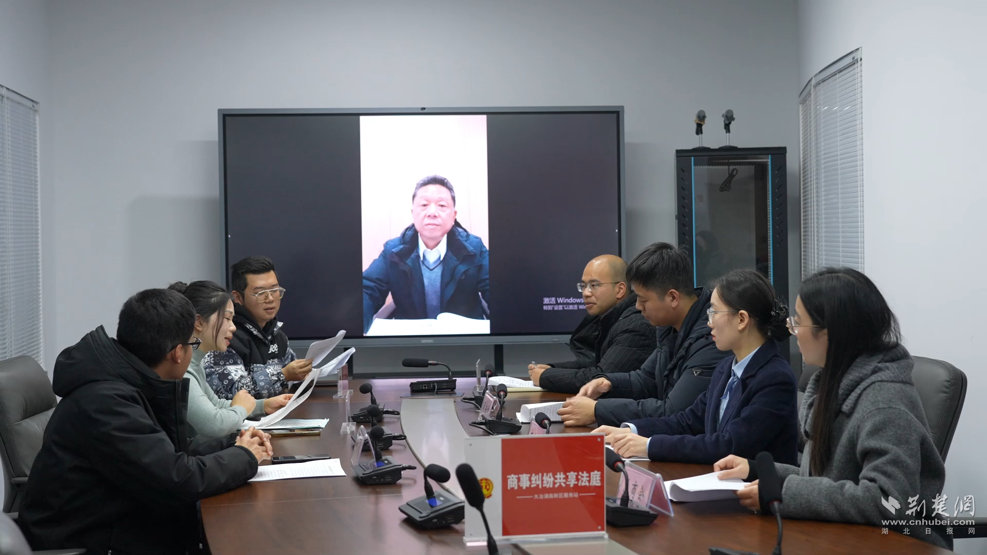 湖北大冶泰隆村鎮銀行服務站內,承辦法官正通過商事糾紛“共享法庭”遠程調解一起借款合同糾紛