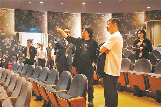 黃磊(右)與孟京輝(中)在劇場巡場