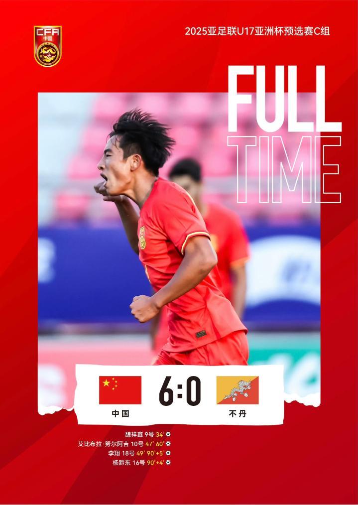 新華社大連10月23日電 23日,在大連進行的一場2025亞足聯U17亞洲杯預選賽C組第三輪比賽中,中國隊6:0大勝不丹隊,迎來兩連勝。