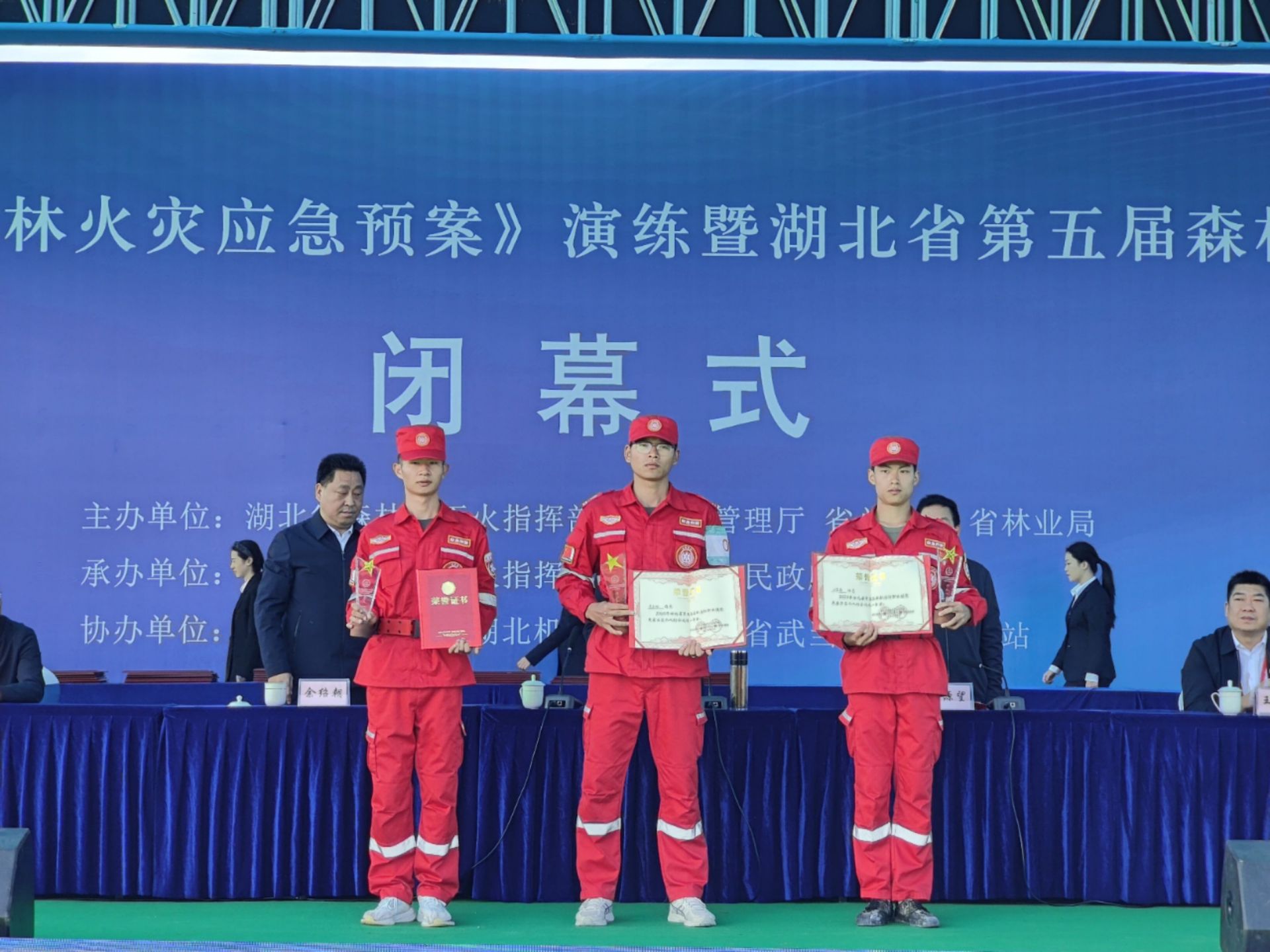 經過激烈角逐,十堰市應急代表隊獲綜合團體一等獎,黃岡市、武漢市應急代表隊獲綜合團體二等獎,黃石市、宜昌市應急代表隊以及孝感市林業代表隊獲綜合團體三等獎。比賽還評出個人獎共16名,1500 米負重越野、300 米水泵接力與滅火裝備應用等單項共評出團體獎18個。為確保此次比賽的公平和公正性,競賽組委會邀請國家消防救援局湖北機動隊伍的教員擔任競賽現場裁判。