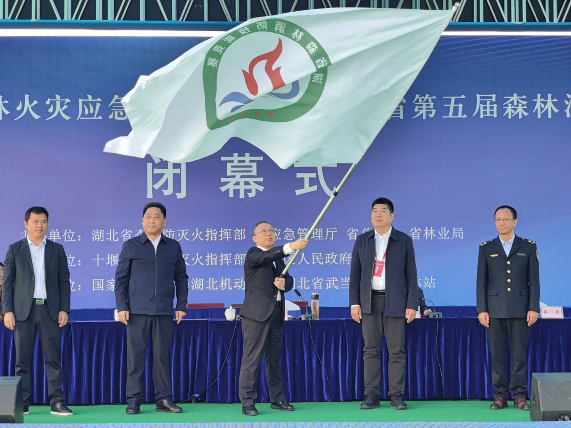 荊楚網(湖北日報網)訊(記者范慧瑾 通訊員 童明軍 袁聆斌)10月24日上午,2024年度湖北省森林火災應急預案演練暨湖北省第五屆森林消防職業技能競賽在十堰市鄖陽區閉幕。閉幕儀式為技能競賽獲獎選手及團隊頒發了獎牌,舉行了會旗交接儀式。