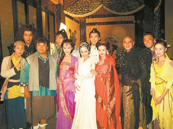 《仙劍奇俠傳三》演員合影,前排中間從左至右依次為唐嫣、楊冪、劉詩詩