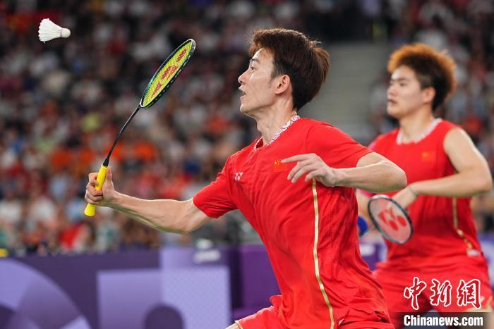 資料圖:當地時間8月4日,在巴黎奧運會羽毛球男子雙打決賽中,中國組合梁偉鏗/王昶奪得銀牌。圖為梁偉鏗/王昶(前)在比賽中。 記者 趙文宇 攝