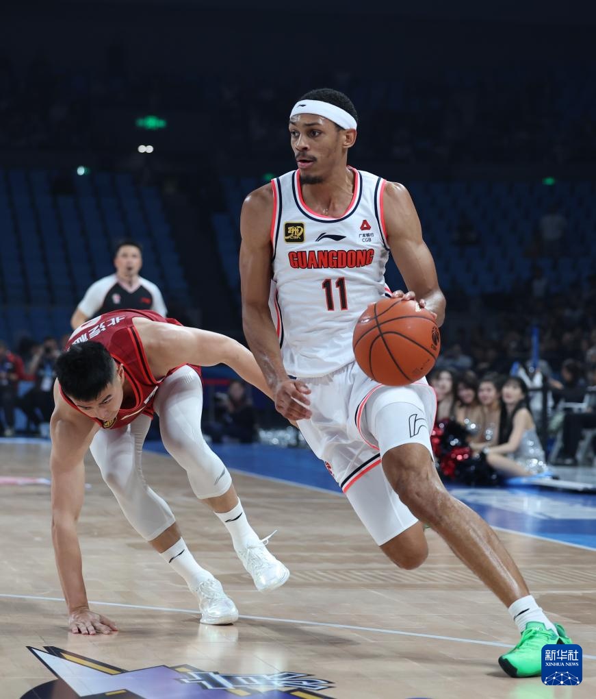 10月25日,廣東東陽光隊球員貝茲利(右)在比賽中帶球突破。