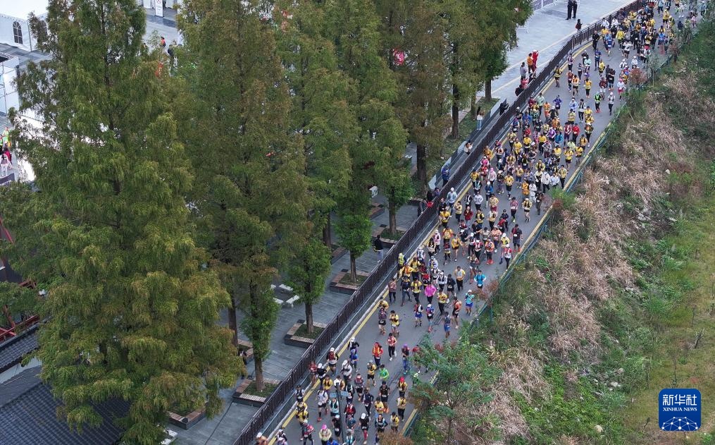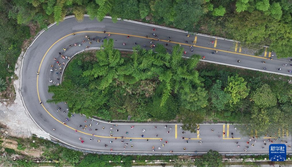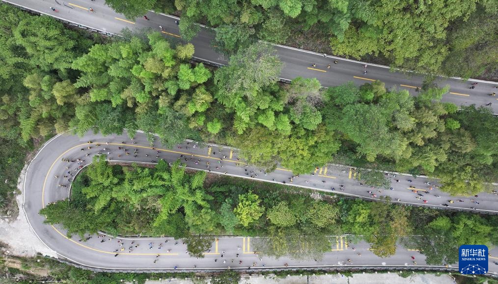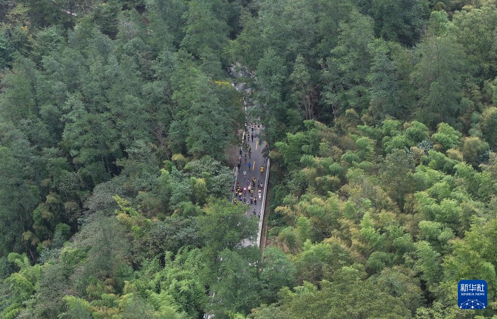 10月27日,越野跑選手在比賽中(無人機照片)。