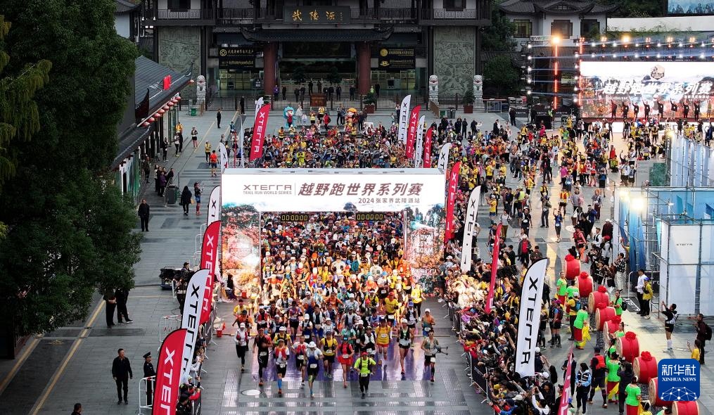 當日,2024 XTERRA 越野跑世界系列賽(張家界武陵源站)在湖南省張家界市武陵源區舉行,吸引了來自中國、法國、德國等27個國家和地區的2000余名越野跑選手參賽。
