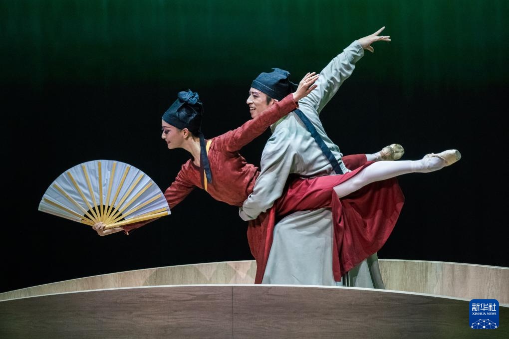 10月18日,演員在香港文化中心大劇院表演芭蕾舞劇《梁山伯與祝英臺》。新華社記者 朱煒 攝