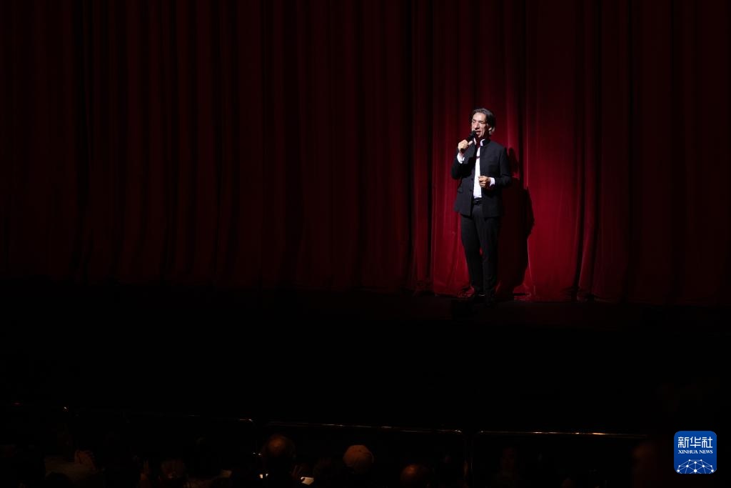 10月18日,來自美國的港芭藝術總監衛承天在芭蕾舞劇《梁山伯與祝英臺》正式公演前對觀眾發言。新華社記者 朱煒 攝