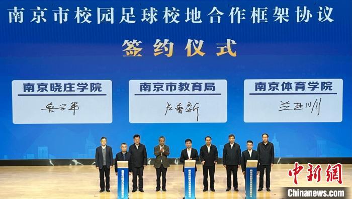 南京市校園足球校地合作框架協議簽約儀式。中新網記者 朱曉穎 攝