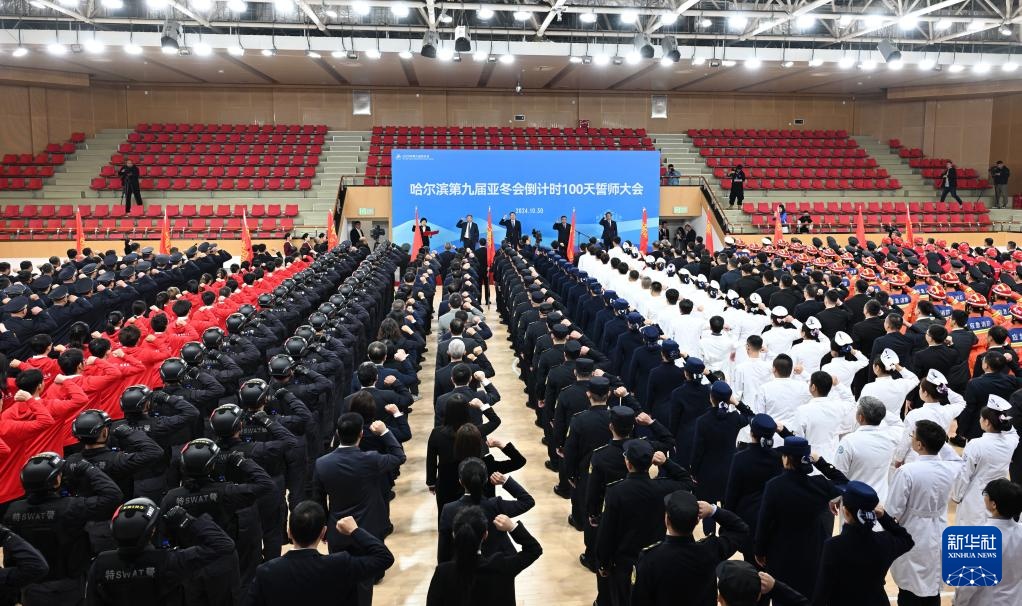 當日,哈爾濱第九屆亞冬會倒計時100天誓師大會在哈爾濱人民體育館舉行。