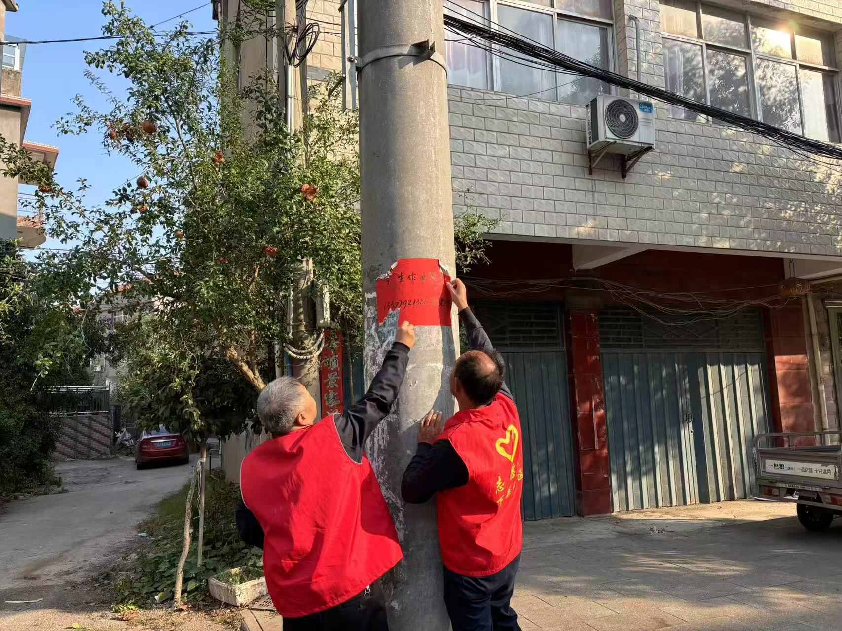 清理破舊廣告,美化社區容貌。為了給道路立面墻去斑,社區干部不清外援,親自徒手清理廣濟大道沿線廣告,臟水污泥浸濕了外套、弄臟了褲腿,社區干部不嫌一聲臟,手臂清廣告清僵硬麻木了,他們不喊一聲累。人民公仆情懷在他們身心有了淋漓盡致的展現。