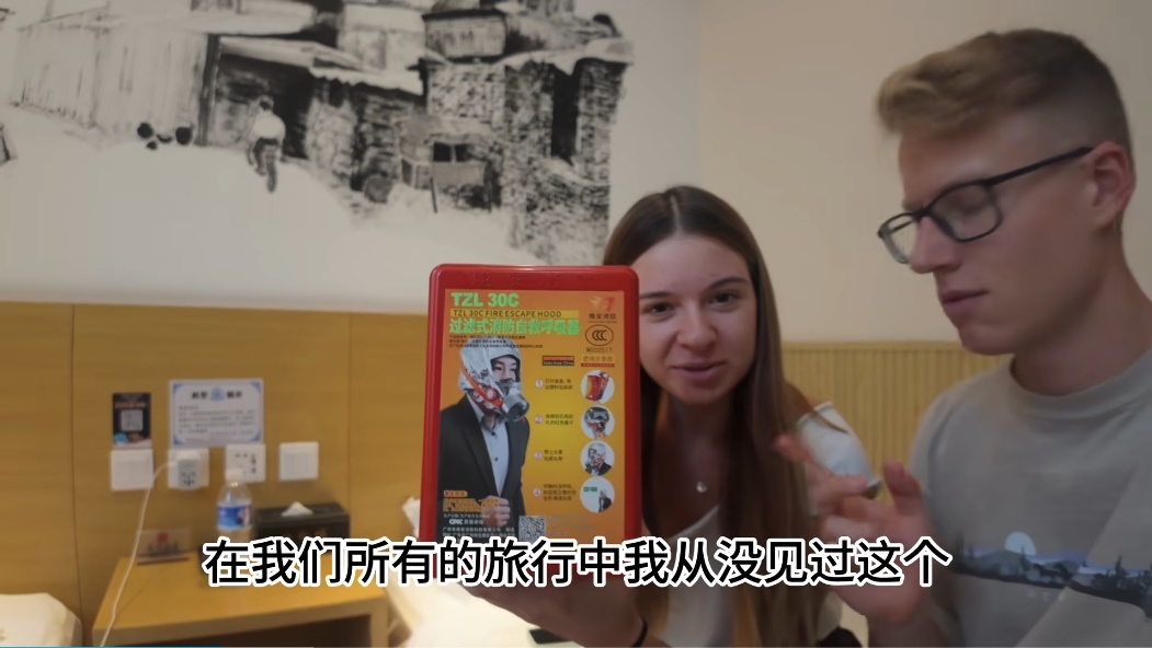 外國游客稱贊中國酒店里的“過濾式消防自救呼吸器”。