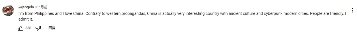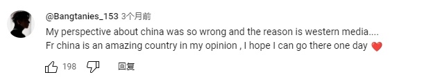 我以前對中國的看法完全是錯誤的,原因在于西方媒體。在我看來,中國是一個神奇的國家,我希望有一天我能去那里。