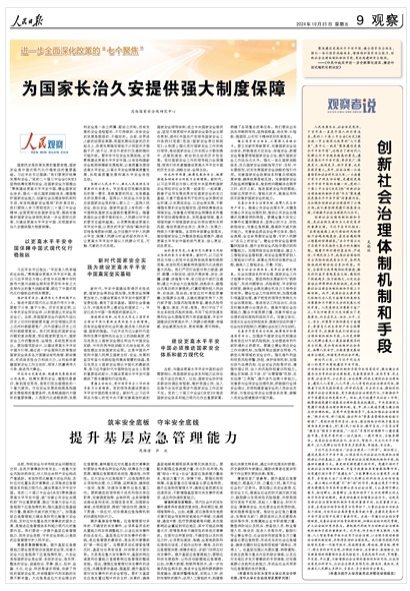 國(guó)泰民安是改革發(fā)展的重要前提,國(guó)家安全是中國(guó)式現(xiàn)代化行穩(wěn)致遠(yuǎn)的重要基礎(chǔ)。習(xí)近平總書記強(qiáng)調(diào):“我們要更好統(tǒng)籌發(fā)展和安全?!秉h的二十屆三中全會(huì)《決定》堅(jiān)持統(tǒng)籌發(fā)展和安全,在國(guó)家安全方面提出“聚焦建設(shè)更高水平平安中國(guó),健全國(guó)家安全體系,強(qiáng)化一體化國(guó)家戰(zhàn)略體系,增強(qiáng)維護(hù)國(guó)家安全能力,創(chuàng)新社會(huì)治理體制機(jī)制和手段,有效構(gòu)建新安全格局”的改革目標(biāo)。我們要深入學(xué)習(xí)貫徹黨的二十屆三中全會(huì)精神,全面貫徹總體國(guó)家安全觀,圍繞完善維護(hù)國(guó)家安全體制機(jī)制進(jìn)一步全面深化改革,為建設(shè)更高水平平安中國(guó)、實(shí)現(xiàn)國(guó)家長(zhǎng)治久安提供強(qiáng)大制度保障。【全文】