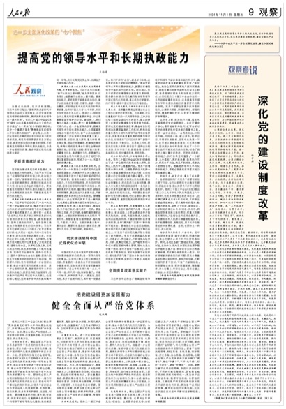 治國(guó)必先治黨,黨興才能國(guó)強(qiáng)。習(xí)近平總書記指出:“要順利推進(jìn)新時(shí)代中國(guó)特色社會(huì)主義各項(xiàng)事業(yè),必須完善堅(jiān)持黨的領(lǐng)導(dǎo)的體制機(jī)制,更好發(fā)揮黨的領(lǐng)導(dǎo)這一最大優(yōu)勢(shì)”。黨的二十屆三中全會(huì)《決定》錨定2035年基本實(shí)現(xiàn)社會(huì)主義現(xiàn)代化目標(biāo)提出“七個(gè)聚焦”的分領(lǐng)域改革目標(biāo),其中一個(gè)重要方面是“聚焦提高黨的領(lǐng)導(dǎo)水平和長(zhǎng)期執(zhí)政能力”。新征程上,以進(jìn)一步全面深化改革的總目標(biāo)引領(lǐng)改革不斷取得新成效,把黨的領(lǐng)導(dǎo)貫穿改革各方面全過(guò)程,就要持續(xù)加強(qiáng)和改善黨的領(lǐng)導(dǎo),不斷提高黨的領(lǐng)導(dǎo)水平和長(zhǎng)期執(zhí)政能力,為進(jìn)一步全面深化改革、推進(jìn)中國(guó)式現(xiàn)代化提供根本保證。【全文】