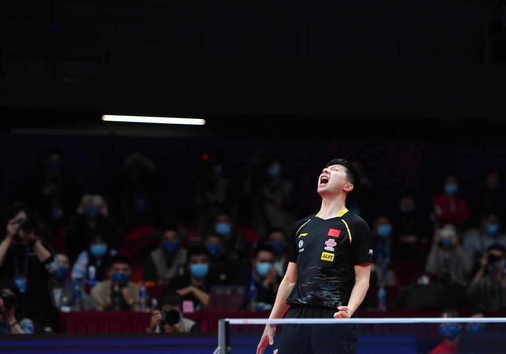2020年11月22日,在鄭州進行的2020國際乒聯總決賽男子單打決賽中,馬龍以4:1戰勝隊友樊振東,奪得冠軍。新華社記者 李嘉南 攝