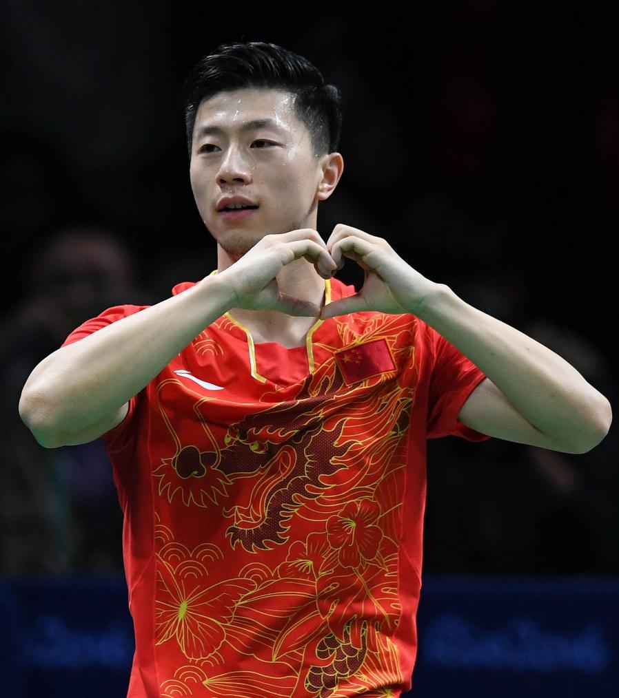 2016年8月11日,馬龍在獲得里約奧運會乒乓球男子單打冠軍后慶祝。新華社記者 藺以光 攝