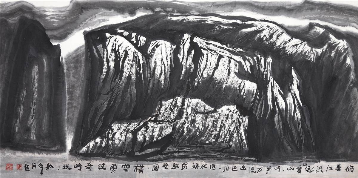 兩次“長江萬里行”,讓周老感慨萬千:長江,象征著中華民族無窮力量、象征著不可抗拒的歷史潮流,在進入三峽一帶時,以神工鬼斧雕刻著偉岸絕壁,群峰嵯峨,層巒疊嶂,漩流吞吐,象征著龍之子孫的品格,為畫家表現雄壯美、力量美、氣勢美和崇高美,集中地提供了最好的素材。