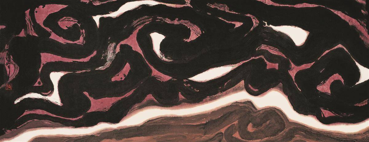 滾滾長江入畫卷。周韶華創作的大量長江題材作品,已成為藝術史上的寶貴財富。他表示,在自己心中一直銘刻著八個大字——“圖式換型,語言更新”。“從哪里著手解決呢?一是從大自然中尋找答案,從長江流域的雄偉大山、大川中去尋找結構外張,強化視覺張力。我的任務不是去詮釋長江、話說長江,而是通過體驗感受,聆聽大自然的回聲,追尋宇宙生命的表現”。