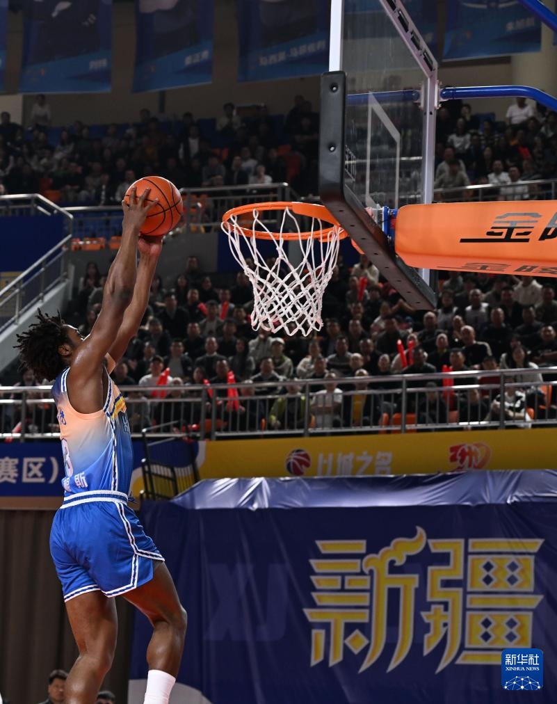 11月3日,新疆伊力特隊球員黑根斯在比賽中扣籃。