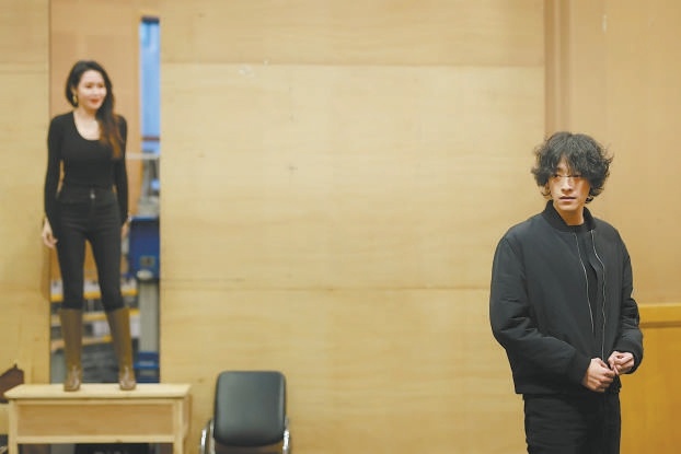 鄭云龍(右)和于明加(左)排練《榆樹下的欲望》。 北京日報記者 方非攝