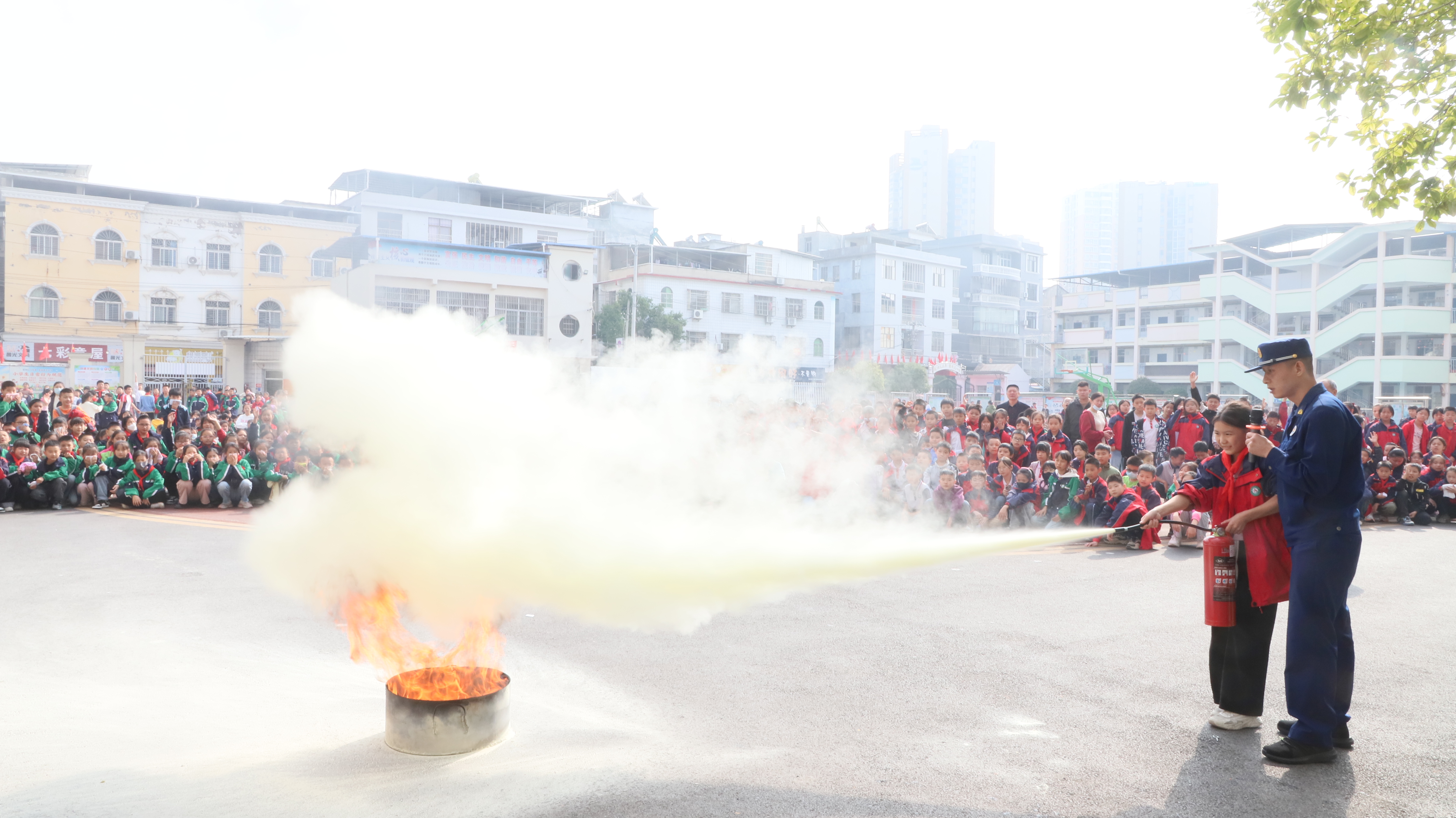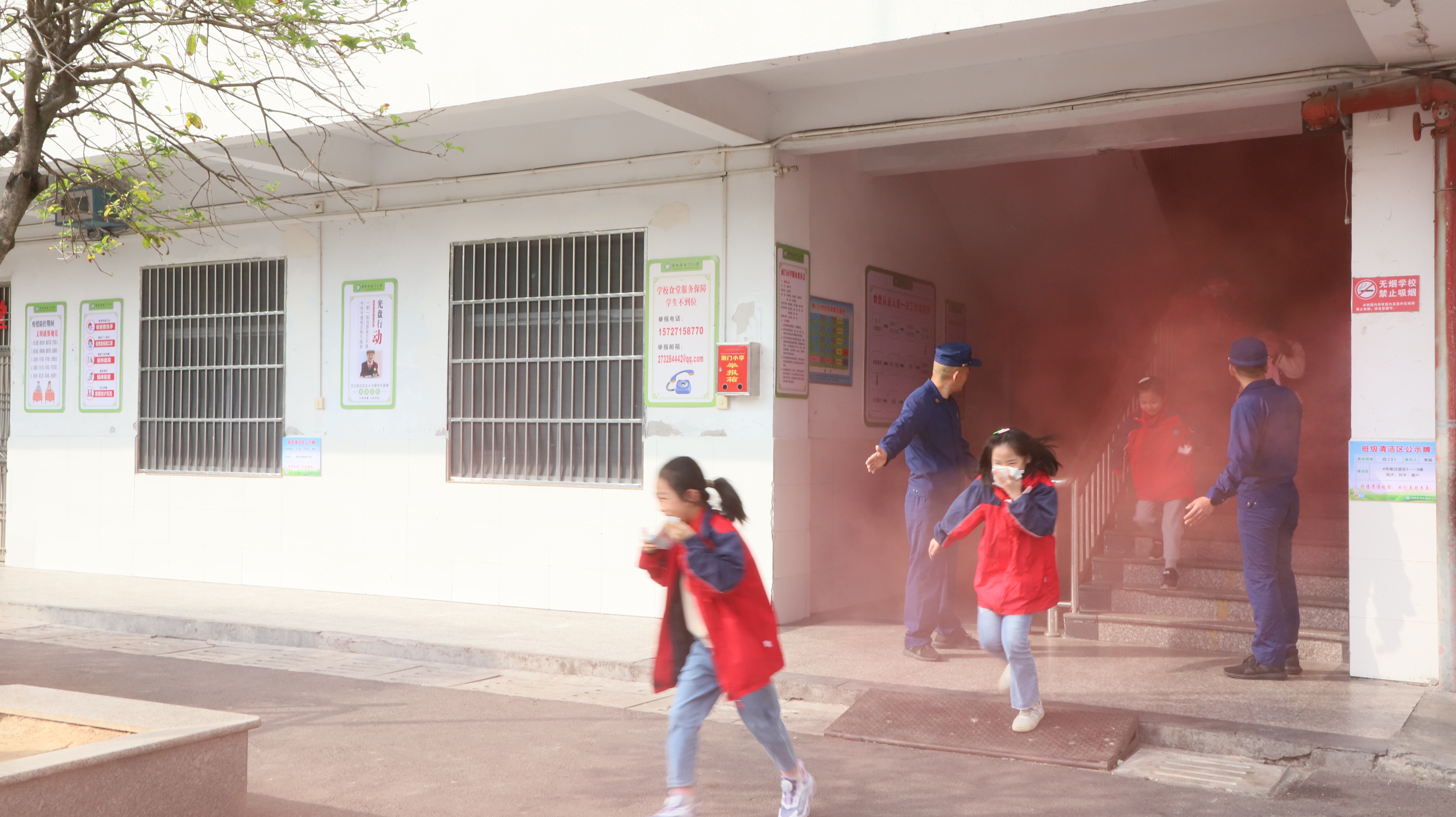 “叮鈴鈴......”隨著急促的警報聲響起,演練正式開始。在咸寧通城縣南門小學,“火焰藍”宣教隊應邀開展應急疏散演練及消防知識培訓,為全校2000余名師生上了一堂別開生面的消防安全課。學生在各班老師的引導下,紛紛低姿彎腰、手捂口鼻,沿著設定好的樓梯、安全出口,安全、快速、有序地撤離“火災”現場,到達安全地帶,整個疏散過程井然有序,達到了預期效果。“同學們,你們知道撥打火警電話后需講清楚哪些內容呢?”授課中,“火焰藍”宣教隊重點對學校食堂、教學樓等區域日常火災預防、發生火災如何正確報警、發生火災如何逃生自救、滅火器的正確操作方法等內容進行詳細講解。現場展示了消防裝備器材,講解了空氣呼吸器、防煙面罩、滅火戰斗服的用途,教授了滅火器材正確使用方法及注意事項,并邀請學生代表輪番體驗。