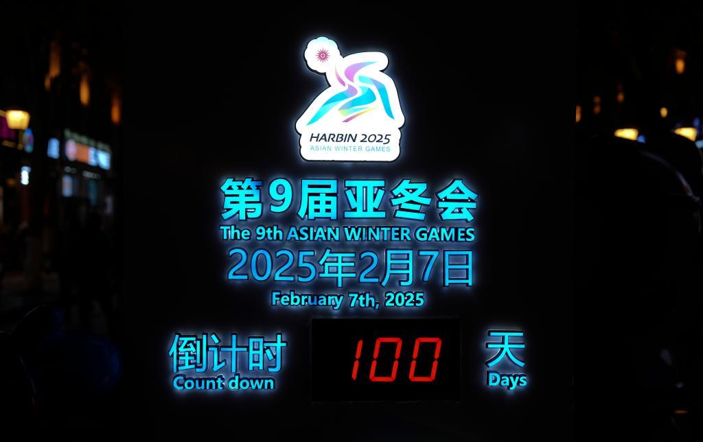 這是在哈爾濱中央大街上拍攝的亞冬會倒計時牌(10月30日攝)。新華社記者 王松 攝