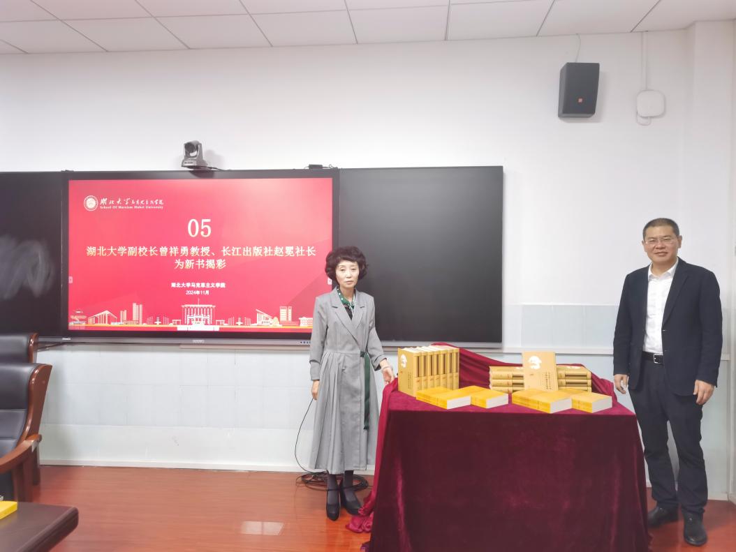 湖北大學(xué)副校長(zhǎng)曾祥勇教授、長(zhǎng)江出版社趙冕社長(zhǎng)為新書揭彩。