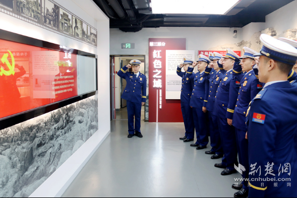 在荊州市檔案館“蘭臺荊典”檔案文獻展廳,1800多件精華檔案一一陳列,平面展墻、仿真檔案、數字化互動屏幕、三維數字場景等多種展示形式,讓“荊州故事”藉由展板、實物、觸屏、聲光等高科技技術,多姿多彩地呈現在眼前。全體消防救援人員在解說員的帶領下,依次瀏覽了“文化之邦”、“魚米之鄉”、“紅色之域”、“明星之城”、“大美之境”等板塊,重溫了革命前輩的崢嶸歲月,領略了荊州地區經濟社會發展的蓬勃態勢,感受了荊州人民奮進新時代的昂揚斗志。