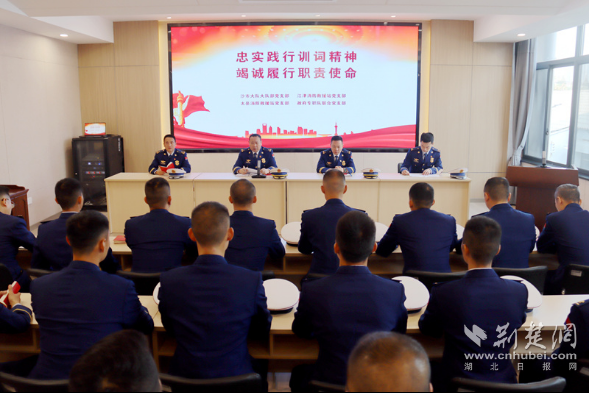 “作為新時代下的消防救援人員,要把學習貫徹總書記訓詞精神,轉化為推動消防救援事業高質量發展的強大動力。”在三樓報告廳,政治教導員朱瑞士為全體消防救援人員上黨課,號召大家強化自我修煉、加強自我約束,全面理解和執行黨的各項紀律,以實際行動堅定擁護“兩個確立”、堅決做到“兩個維護”。