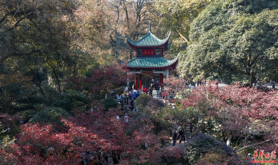 “停車坐愛楓林晚,霜葉紅于二月花。”位于岳麓山風景名勝區的愛晚亭是國內著名的賞楓觀葉佳處,每至深秋,楓葉流丹,層林盡染,燦若云霞。今年,愛晚亭楓葉的最佳觀賞期預計為11月下旬至12月中旬。游客除了在愛晚亭欣賞詩意“楓”景外,還可前往云麓宮、穿石坡湖、觀光長廊等周邊景點打卡賞楓,看萬山紅遍,感受自然氣息。