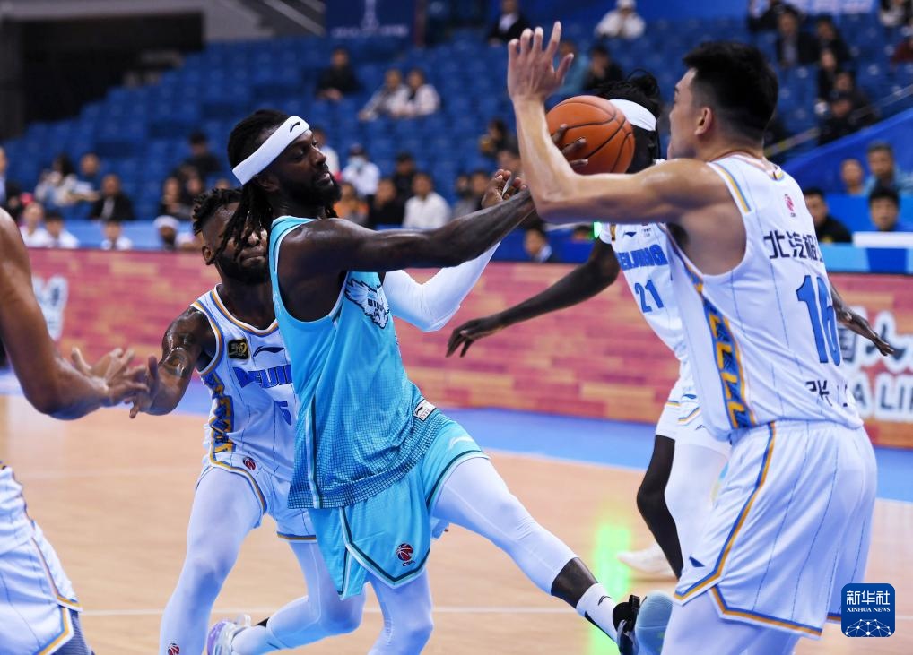 11月12日,北京北汽隊球員奧莫特(左)在比賽中持球進攻。新華社記者 李紫恒 攝