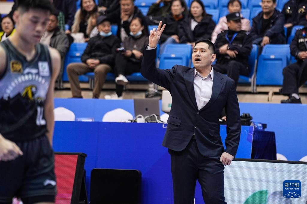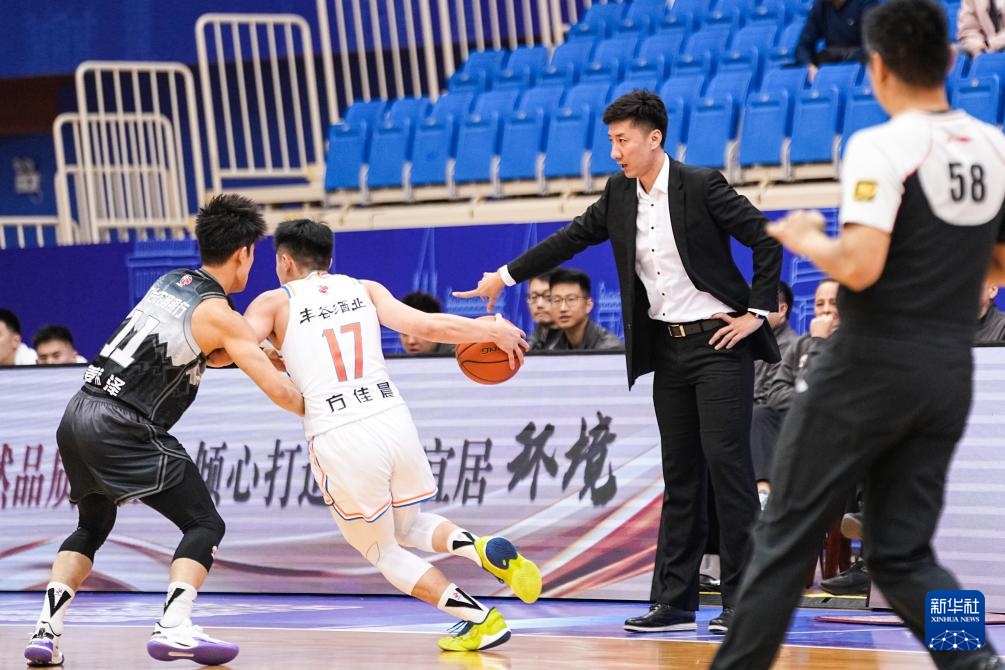 11月12日,四川豐谷酒業隊主教練韓碩(右)在場邊指揮。新華社記者 朱崢 攝
