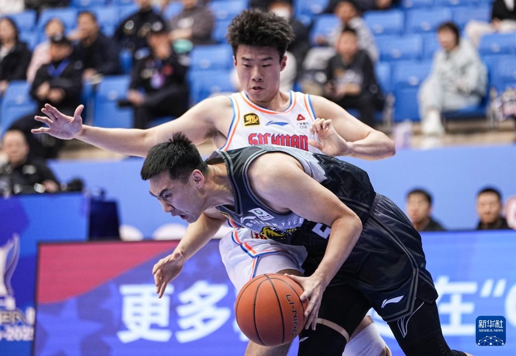 11月12日,吉林九臺農商銀行隊球員吳昌澤(左)與四川豐谷酒業隊球員李金效在比賽中拼搶。新華社記者 朱崢 攝